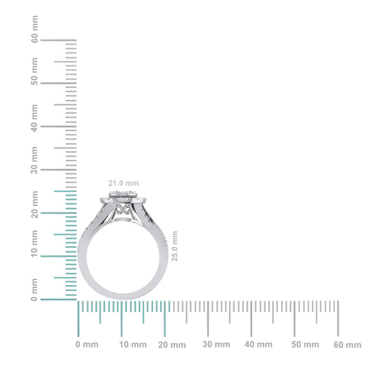 10K White Gold Round Diamond Halo Bridal Cluster Ring 7/8 Ctw