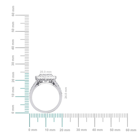 10K White Gold Round Diamond Halo Bridal Cluster Ring 1 7/8 Ctw