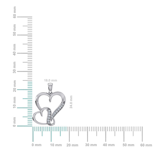 10K White Gold Round Diamond Womens Double Heart Pendant 1/10 Ctw