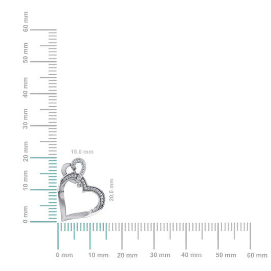 10K White Gold Round Diamond Womens Double Heart Pendant 1/10 Ctw