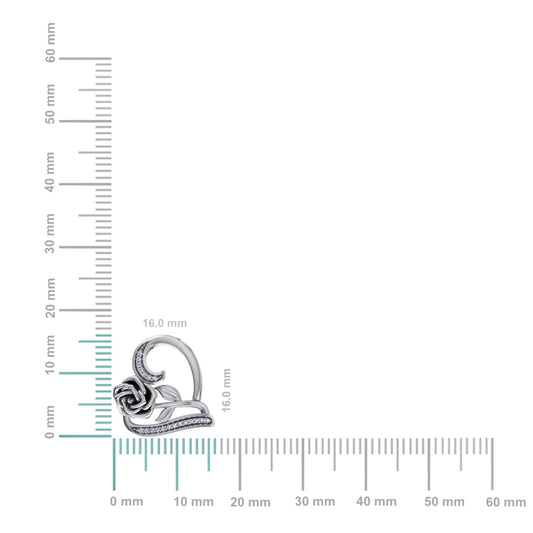 10K White Gold Round Diamond Womens Heart Rose Heart Pendant 1/25 Ctw