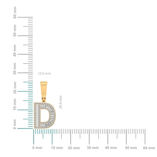 10K Yellow Gold Baguette Diamond Initial D Letter Pendant 1/2 Ctw