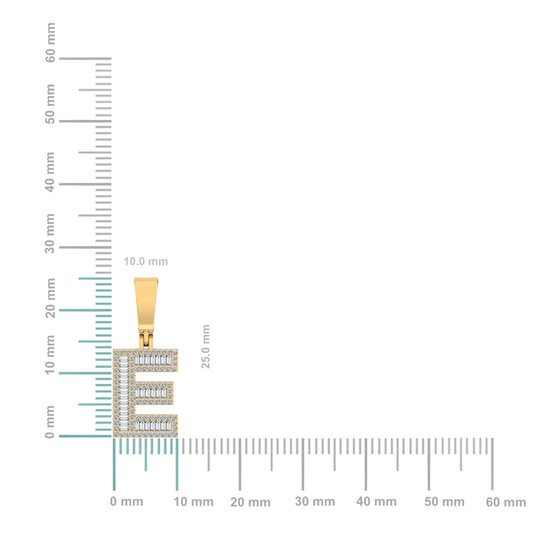 10K Yellow Gold Baguette Diamond Initial E Letter Pendant 1/2 Ctw