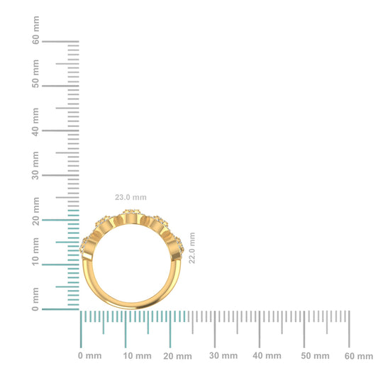 10K Yellow Gold Round Baguette Diamond Pear Shape Size 7 Designer Ladies Ring 3/4 Ctw
