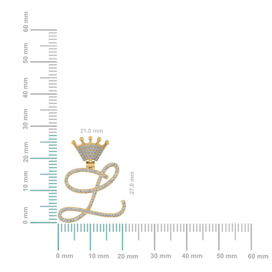 10K Yellow Gold Round Diamond Crown L Letter Initial Pendant 1/4 Ctw