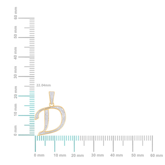 10K Yellow Gold Round Diamond D Letter Initial Pendant 1/6 Ctw