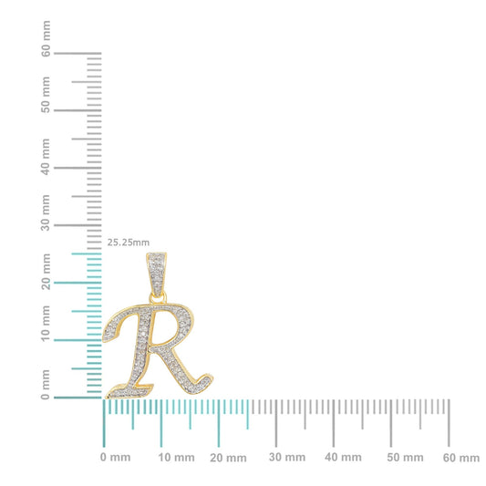 10K Yellow Gold Round Diamond R Letter Initial Pendant 1/10 Ctw