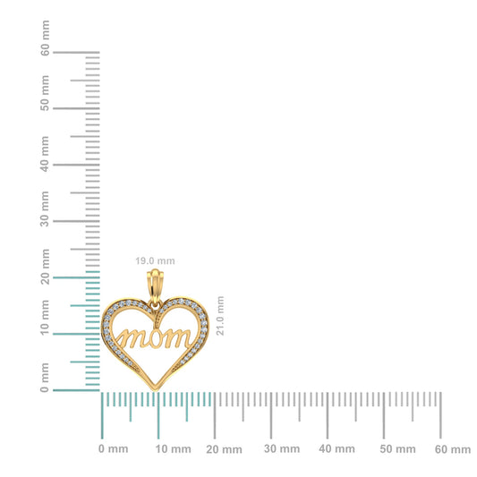 10K Yellow Gold Round Diamond Womens Mom Heart Pendant 1/8 Ctw