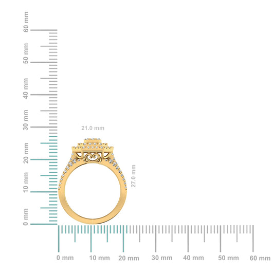 10K Yellow Gold Round Diamond Womens Square Shape Bridal Ring 7/8 Ctw
