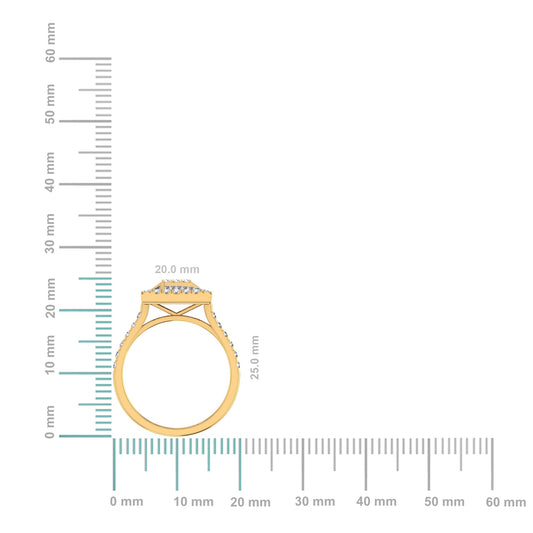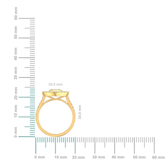 14K Yellow Gold Round Baguette Diamond Pear Shape Womens Designer Ring 3/4 Ctw