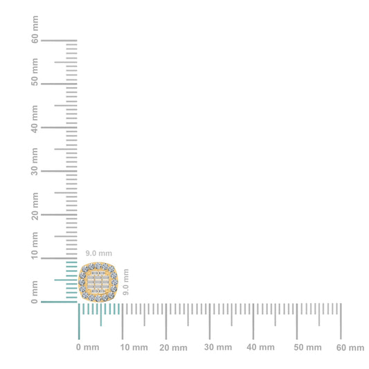 14K Yellow Gold Round Baguette Diamond Square Shape Cluster Stud EarRing 1/2 Ctw