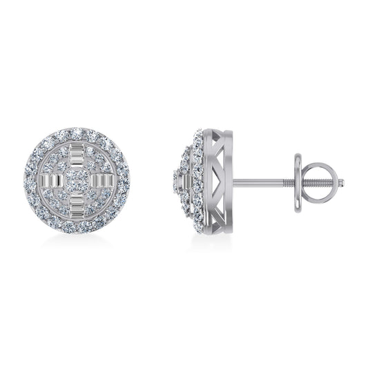 10K White Gold Round Baguette Diamond Round Shape Stud Earrings 1/3 Ctw