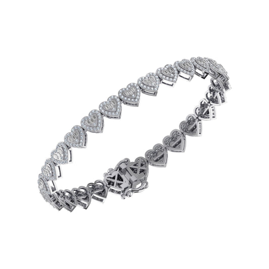 10K White Gold Round Baguette Diamond Heart Designer 7 Inch Bracelet 2-1/6 Ctw