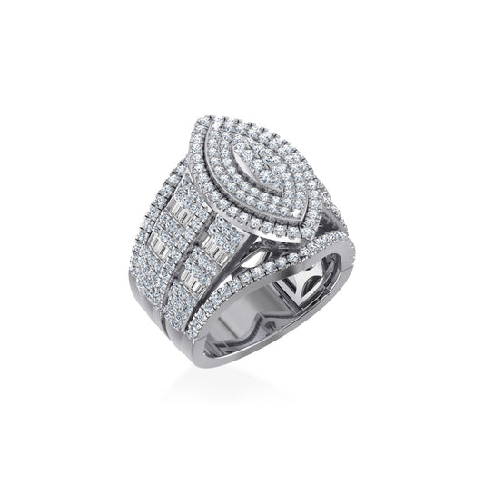 10K White Gold Round Baguette Diamond Marquise Shape Designer Womens Ring Size 7 2 Ctw