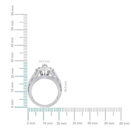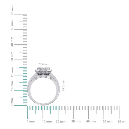 10K White Gold Round Baguette Diamond Halo Size 7 Designer Ladies Ring 7/8 Ctw