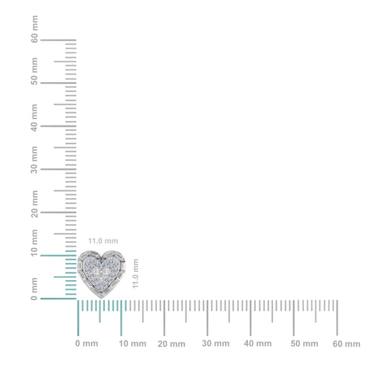 10K White Gold Round Baguette Diamond Heart Shape Cluster Stud Earring 1/5 Ctw