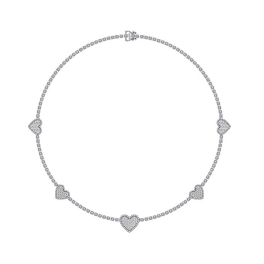 10K White Gold Round Baguette Diamond Heart Shape 18 Inch Necklace 4 Ctw