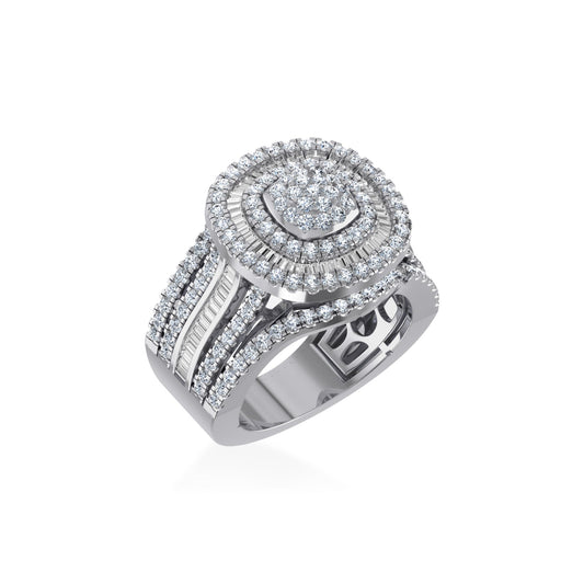 10K White Gold Round Baguette Diamond Square Shape Designer Womens Ring Size 7 2 Ctw