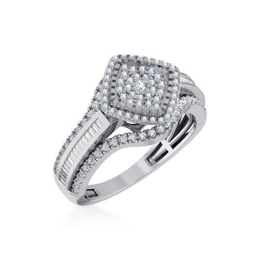 10K White Gold Round Baguette Diamond Square Head Size 7 Designer Ladies Ring 3/4 Ctw