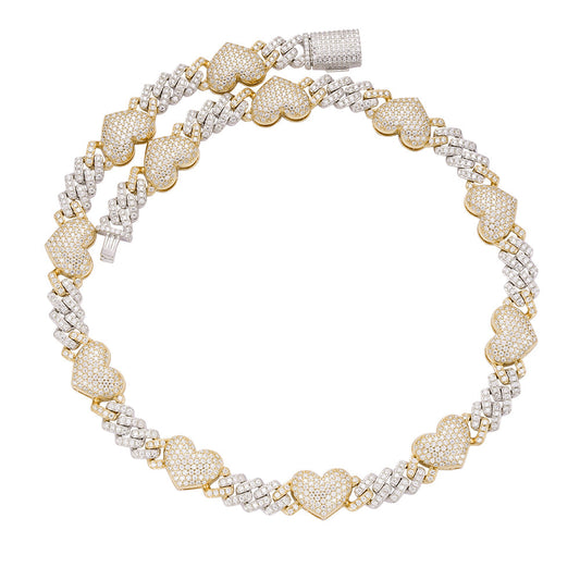 Sterling Silver Round Moissanite Cuban Heart Link Designer 7.5 Inch Bracelet 5-5/8 Ctw