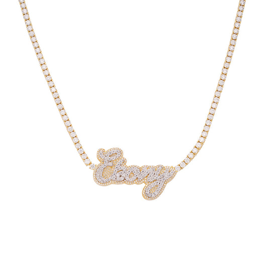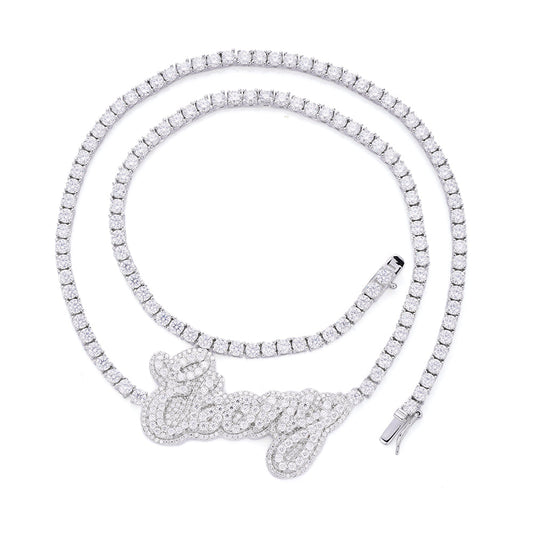 Sterling Silver Round Moissanite Ebony Word Designer 18 Inch Necklace 16-1/8 Ctw