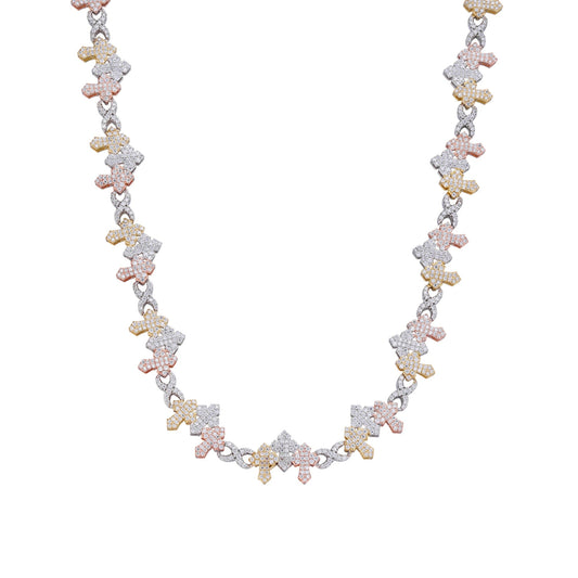 Sterling Silver Round Moissanite Heart with Color Stone Designer 22 Inch Necklace 10-7/8 Ctw