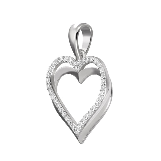 Sterling Silver Round Moissanite Double Row Heart Designer Pendant 1/5 Ctw