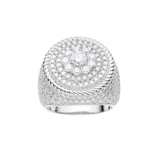 Sterling Silver Round Moissanite Halo Designer Size 9 Men Ring 4-1/8 Ctw