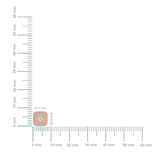 10K Rose Gold Round Baguette Diamond Square Shape Stud Earrings 1/4 Ctw