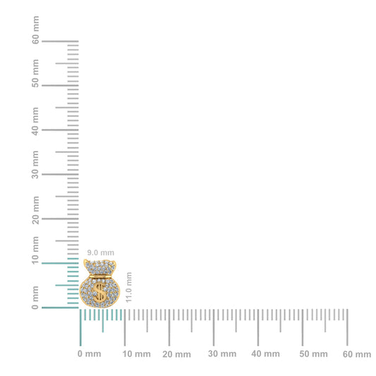 14K Yellow Gold Round Diamond Money Dollar Bag Designer Stud Earrings 1/6 Ctw