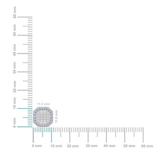 14K White Gold Round Baguette Diamond Square Shape Stud Earrings 1 Ctw
