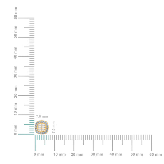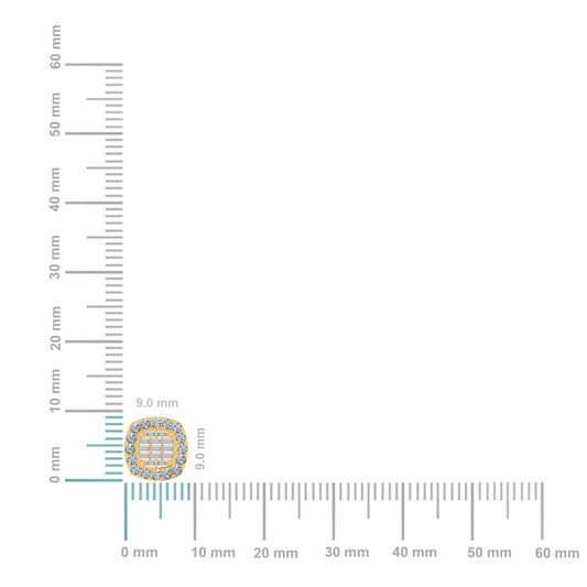 10K Yellow Gold Round Baguette Diamond Square Shape Stud Earrings 1/3 Ctw