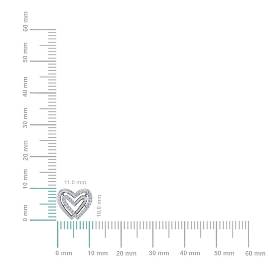 10K White Gold Round Diamond Double Heart Stud Earrings 1/6 Ctw