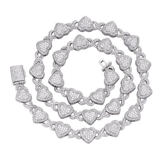 Sterling Silver Round Baguette Moissanite Heart Designer 18 Inch Necklace 14-5/8 Ctw