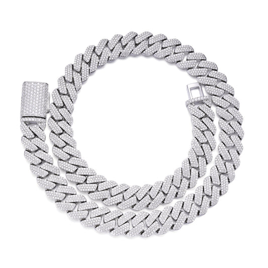 Sterling Silver Moissanite 13mm Square Cuban Chain 22 Inch Necklace 18-1/4 Ctw