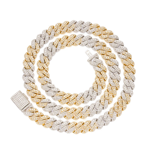 Sterling Silver Moissanite 10mm Heavy Cuban Chain 22 Inch Necklace 15-1/2 Ctw