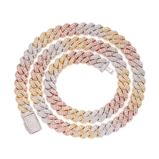 Sterling Silver Round Big Stone in Center Surrounded with Small Stones 10mm Moissanite Cuban Chain 22Inch Necklace 18-3/8 Ctw