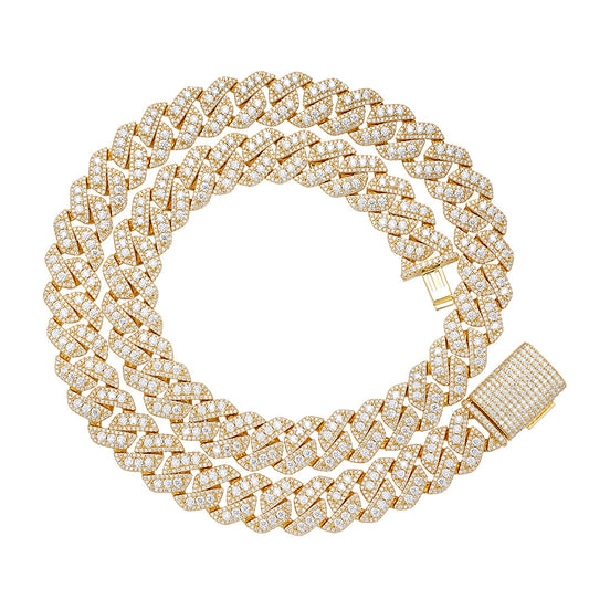Sterling Silver 12mm Round Black Moissanite Miami Cuban Chain 22 Inch Men Necklace 19-5/8 Ctw