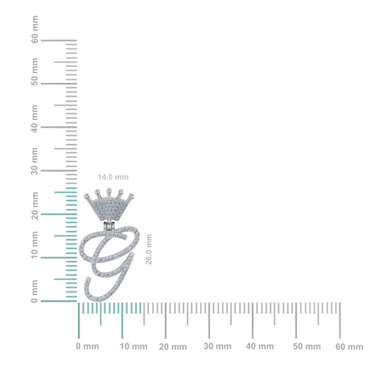 10K White Gold Round Diamond Crown G Letter Initial Pendant 1/5 Ctw