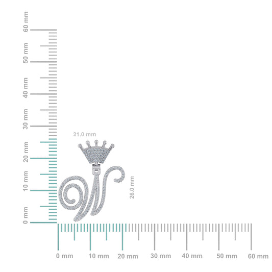 10K White Gold Round Diamond Crown W Letter Initial Pendant 1/4 Ctw