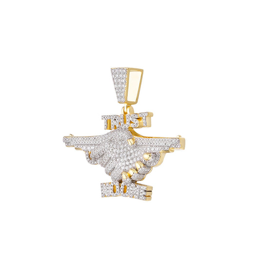 Sterling Silver Moissanite Angel Wings Religious Pendant 1-1/2 Ctw
