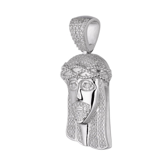 Sterling Silver Moissanite Jesus Face Religious Pendant 3-1/3 Ctw