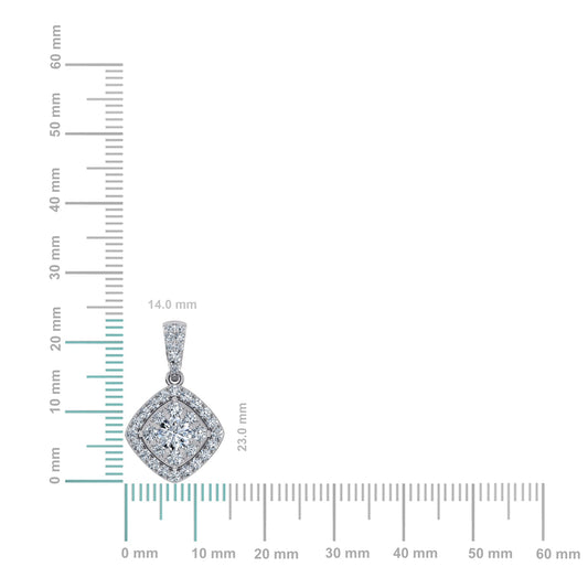 14K White Gold Round Moissanite Square Shape WoMen Designer Pendants 1 Ctw