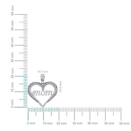10K White Gold Round Diamond Womens Mom Heart Pendant 1/8 Ctw
