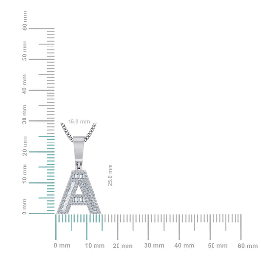 10K White Gold Baguette Initial A Pendant 3/8 Ctw