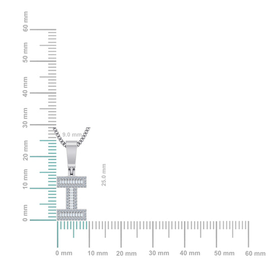 10K White Gold Tw Baguette Initial I Pendant 1/3 Ctw