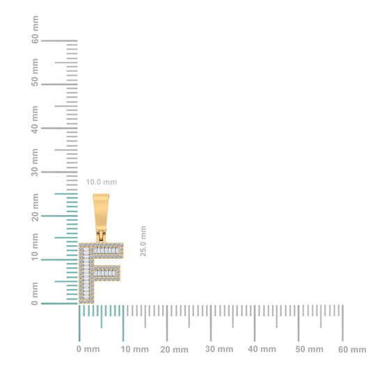 10K Yellow Gold Baguette Diamond Initial F Letter Pendant 3/8 Ctw