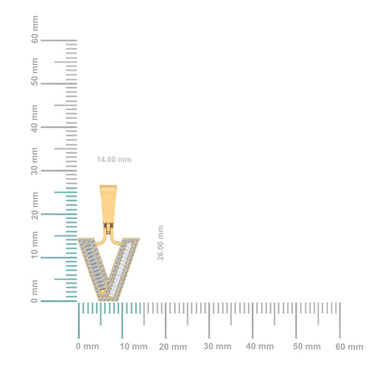 10K Yellow Gold Baguette Diamond Initial V Letter Pendant 1/3 Ctw