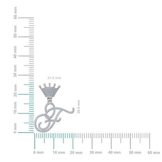 10K White Gold Round Diamond Crown F Letter Initial Pendant 1/4 Ctw