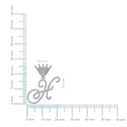 10K White Gold Round Diamond Crown H Letter Initial Pendant 1/4 Ctw